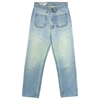 Multi-media research on influential designers. Find our website for more information. --- 80s Bootleg Denim Jeans Yoji Pour Homme 1980s Size: 30 100% cotton Waist: 14" / 36 cm Thigh: 11.5" / 29 cm Rise: 13.5" / 35 cm Inseam: 31" / 79 cm Length: 42" / 107 cm Leg opening: 8.5" / 22 cm --- Bootleg denim jeans from Yoji Pour Homme. As you can see in the pictures, those jeans are not Yohji Yamamoto Pour Homme, but rather a bootleg version of the line which seems to date back from the 1980s. It is somewhat confusing that jeans would be produced under this brand name when you consider that Yohji Yamamoto did not properly produce jeans until the early 2000s. In any case, they are still some of my favorite pants in my collection. They fit amazingly well, the quality of the fabric is surprisingly good, and they have a really unique design with the front pockets looking like back pockets. They are used and have some stains, but they are still in great condition.