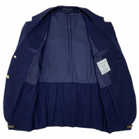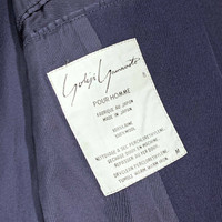 Multi-media research on influential designers. Find our website for more information. --- AW87 Piped Wool Blazer with Wooden Buttons Yohji Yamamoto Pour Homme Autumn/Winter 1987-1988 Size: M 100% wool Lining: 100% cupro Made in Japan π―π΅ Shoulder width: 20.5" / 52 cm Chest width: 23" / 59 cm Sleeve length: 26" / 66 cm Body length: 30" / 76 cm --- Piped wool blazer with wooden buttons from Yohji Yamamoto Pour Homme, Autumn/Winter 1987-1988. Some collectors would argue that this is one of the best Yohji Yamamoto Pour Homme collections. I am one of them. Everything about this collection is iconic and this piece is a good example of that. Yohji himself seemed to love this collection for many years afterward considering that he wore this exact blazer in 1991, the day that he presented '6.1 THE MEN'. The navy-colored fabric, the pipping, and the wooden buttons are all great elements that are rarely found in Yohji's large body of work. It has a beautiful fit. It is in bad condition with a number of moth holes in it.