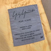 Multi-media research on influential designers. Find our website for more information. --- AW92 Oversized Wool Shawl Lapel Blazer Yohji Yamamoto Pour Homme Autumn/Winter 1992-1993 Size: M 100% wool Made in Japan 🇯🇵 Shoulder width: 21" / 54 cm Chest width: 22.5" / 57 cm Sleeve length: 26" / 66 cm Body length: 32.5" / 83 cm --- Oversized wool shawl lapel blazer from Yohji Yamamoto Pour Homme, Autumn/Winter 1992-1993. This amazing piece works perfectly as a classy yet casual light jacket. The back can be cinched from the inside by a drawstring. The small details on the shawl lapel were hand-sewn. It is in fair condition: it has a few small holes and stains.