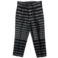 Multi-media research on influential designers. Find our website for more information. --- AW95 Striped Wool Prisoner Pants Yohji Yamamoto Pour Homme Autumn/Winter 1995-1996 Size: M 100% wool Lining: 100% rayon Made in Japan 🇯🇵 Waist: 16" / 41 cm Thigh: 12.5" / 32 cm Rise: 14" / 36 cm Inseam: 26.5" / 67 cm Length: 38" / 97 cm Leg opening: 8" / 21 cm --- Striped wool prisoner pants from Yohji Yamamoto Pour Homme, Autumn/Winter 1995-1996. This pair of pants is one of the most iconic yet understated pieces from this collection: they were part of some of the most iconic looks on the runway and they were worn by no other than Iggy Pop, as the black shiny stripes are a nod to S&M outfits. They are comfortable and fit nicely. They are in great condition, but take note that the coating has lost some of its shine over time and that sitting for a long time may leave a residue behind.