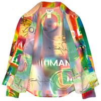 Multi-media research on influential designers. Find our website for more information. --- SS02 Saeko Tsuemura Psychedelic 'Propeller Girl' Polyester Shirt Yohji Yamamoto Pour Homme Spring/Summer 2002 Size: 3 100% polyester Made in Japan 🇯🇵 Shoulder width: 18" / 46 cm Chest width: 23" / 59 cm Sleeve length: 26.5" / 67 cm Body length: 28.5" / 73 cm --- Saeko Tsuemura psychedelic 'Propeller Girl' polyester shirt from Yohji Yamamoto Pour Homme, Spring/Summer 2002. One of the most iconic pieces in archive fashion. This article was produced by Yohji Yamamoto working in collaboration with illustrator and long-time collaborator of the label Saeko Tsuemura. The shirt features one of the three iconic 3D characters by Saeko Tsuemura that appeared throughout the collection. With a psychedelic pattern evolving throughout the whole piece, it has the girl with a propeller hat, which I have affectionately named 'Propeller Girl', on the right arm. It fits perfectly and is extremely comfortable. It looks amazing for all occasions. It is in good condition.
