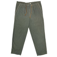Multi-media research on influential designers. Find our website for more information. --- SS79 Contrast Stitch Striped Cotton Drawstring Pants Y's Spring/Summer 1979 Size: M / 9 100% cotton Made in Japan 🇯🇵 Waist: 19.5" / 49.5 cm Thigh: 15" / 38 cm Rise: 15.5" / 39 cm Inseam: 27" / 69 cm Length: 32" / 82 cm Leg opening: 9" / 23 cm --- Striped cotton drawstring pants from Y's, Spring/Summer 1979. This piece is one of the oldest in our Yohji Yamamoto collection. With their fabric and contrast stitching, those pants are incredibly beautiful. They can fit nearly any waist size because of the leather drawstring. They are perfect for the summer season as they are both extremely light and comfortable. While there are some discolorations, they are still in good condition.