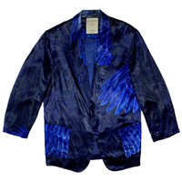 Multi-media research on influential designers. Find our website for more information on our podcast, YouTube channel, and more. --- SS85 Oversized Acetate Blazer with Blue Wing Print Yohji Yamamoto Spring/Summer 1985 Size: M 100% acetate Made in Japan 🇯🇵 Shoulder width: 20" / 51 cm Chest width: 23" / 59 cm Sleeve length: 23" / 59 cm Body length: 32" / 82 cm --- Oversized acetate blazer with blue wing print from Yohji Yamamoto, Spring/Summer 1985. This piece is absolutely magnificent. Its oversized fit makes it perfect for summer and for any occasion. The fabric has a gentle sheen and falls beautifully over the body. It has been used and it is not in the greatest condition. Although not pictured here, many rips have been repaired.