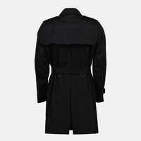 Le trench Kensington noir de Burberry est un manteau pour homme de la collection Automne-Hiver 2025. Il est concu en coton et viscose avec des details elegants et une coupe mi-longue.
