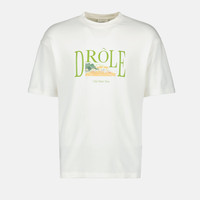 T-shirt Court de tennis blanc de la marque Drole De Monsieur, concu pour les hommes. Faisant partie de la collection Printemps-Ete 2025, il est realise en jersey de coton avec un imprime sur le devant.