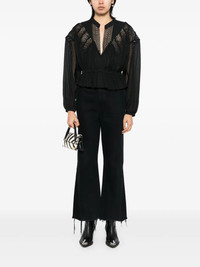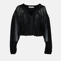 La blouse Rixi noire de la marque Iro est un vetement pour femme de la collection Printemps-Ete 2025. Elle presente un col en V, des manches bouffantes et des details brodes.