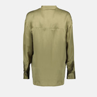 La chemise en soie Jarila vert kaki de la marque Iro est un vetement feminin elegant. Elle fait partie de la collection Printemps-Ete 2025 et presente une coupe longue avec des manches longues.