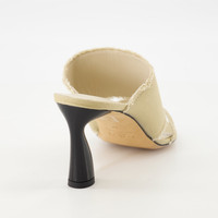 Mules Garnett en toile beige de la marque Iro, concues pour les femmes. Elles font partie de la collection Printemps-Ete 2025, alliant cuir et coton avec un design elegant.