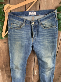 THANK VERY MUCH FOR VISIT OUR PAGE.PLEASE READ CAREFULLY OUR DESCRIPTION AND SATISFIED OUR ITEM BEFORE MAKE PAYMENT ..IF OVER PRICE LET ME KNOW RARE !! Distressed Jeans Denim ACNE STUDIOS Size on tag 31 Colour: Denim Jeans still in good Condition 8.5/10 Actual Measurement : Size : 31 Inches Length : 39 Inches Size knee: 8 Inches Size leg: 7.5 inches Please look detail at the photo for confirmation. If any question please ask to me. Dont worry about customs tax or fee..Usually i declare item as a gift & declare value of item below than original price. **Please dont expect the pieces in mint condition unless state.Its because vintage or used item may have sign of wear.TQ Important: Telephone number is required for standard shipping detail price nego until letgo.TQSM (Ref No:36)