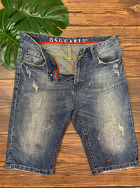THANK VERY MUCH FOR VISIT OUR PAGE.PLEASE READ CAREFULLY OUR DESCRIPTION AND SATISFIED OUR ITEM BEFORE MAKE PAYMENT ..IF OVER PRICE LET ME KNOW RARE!! DSQUAREDS short Denim Jeans Colour: Denim Pants still in good Condition 8/10 Actual waist Measurement : 34-36 Length : 24.5 Inches Size knee: 19 Inches inseam: 13 Inches Please look detail at the photo for confirmation. If any question please ask to me. Dont worry about customs tax or fee..Usually i declare item as a gift & declare value of item below than original price. **Please dont expect the pieces in mint condition unless state.Its because vintage or used item may have sign of wear.TQ Important: Telephone number is required for standard shipping detail price nego until letgo.TQSM ( Ref No:20)