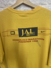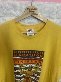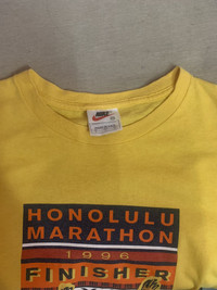 THANK VERY MUCH FOR VISIT OUR PAGE.PLEASE READ CAREFULLY OUR DESCRIPTION AND SATISFIED OUR ITEM BEFORE MAKE PAYMENT . Vintage Shirt Nike Honolulu Marathon 1996 Size on tag M Shirt still in good Condition 9/10 Actual Measurement : Length arm pit to arm pit : 22 Inches Length back collar to hem : 28 Inches Please look detail at the photo for confirmation. If any question please ask to me. All item/pieces will be shipped within 1-2 business day. Postal receipt or proof of shipment will be kept for future refference. Additional charge $25 for special request shipped via DHL courrier.usually post via DHL received within 4-5 day Dont worry about customs tax or fee..Usually i declare item as a gift & declare value of item below than original price. **Please dont expect the pieces in mint condition unless state.Its because vintage or used item may have sign of wear.TQ Important: Telephone number is required for standard shipping detail price nego until letgo.TQSM (Ref No:6)
