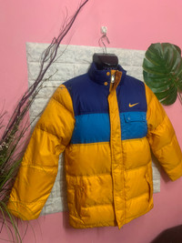Rare Puffer Jacket Nike Three Colour size On tag L ( actual measurement more medium) Sweatshirt still in good Condition 9/10 Actual Measurement : Length arm pit to arm pit 20 Inches Length back collar to hem : 29 Inches Please look detail at the photo for confirmation. If any question please ask to me. All item/pieces will be shipped within 1-2 business day. Postal receipt or proof of shipment will be kept for future refference. dont expect the pieces in mint condition unless state.Its because vintage or used item may have sign of wear.TQ Important: Telephone number is required for standard shipping detail price nego until letgo.TQSM ( Ref No :6)