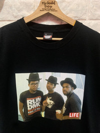 DEADSTOCK!! Shirt RUN DMC Screen Star size On tag L Shirt still in good Condition 9.5/10 Actual Measurement : Length arm pit to arm pit 22.5 Inches Length back collar to hem : 29 Inches Please look detail at the photo for confirmation. If any question please ask to me. All item/pieces will be shipped within 1-2 business day. Postal receipt or proof of shipment will be kept for future refference. dont expect the pieces in mint condition unless state.Its because vintage or used item may have sign of wear.TQ Important: Telephone number is required for standard shipping detail price nego until letgo.TQSM ( Ref No :37)