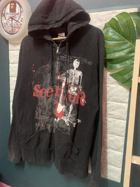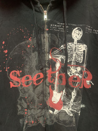 VINTAGE!! Sweater Band SEETHER size On tag M Sweater still in good Condition 8/10 Refer Pics Actual Measurement : Length arm pit to arm pit 21 Hem Inches Length back collar to hem : 26 Inches (Please refer pic for actual measurement/ No issue to argue after item delivered) Please look detail at the photo for confirmation. If any question please ask to me. All item/pieces will be shipped within 1-2 business day. Postal receipt or proof of shipment will be kept for future refference. dont expect the pieces in mint condition unless state.Its because vintage or used item may have sign of wear.TQ Do not claim reimburse shipping fee for return item !! Important: Telephone number is required for standard shipping detail price nego until letgo.TQSM ( Ref No :59)