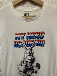 Shirt Anime MY HERO ACEDEMIA size On tag M Shirt still in good Condition 8/10 Actual Measurement : Length arm pit to arm pit 20 Inches Length back collar to hem : 26 Inches Please look detail at the photo for confirmation. If any question please ask to me. All item/pieces will be shipped within 1-2 business day. Postal receipt or proof of shipment will be kept for future refference. dont expect the pieces in mint condition unless state.Its because vintage or used item may have sign of wear.TQ Important: Telephone number is required for standard shipping detail price nego until letgo.TQSM ( Ref No :57-TShirt)