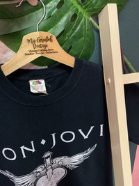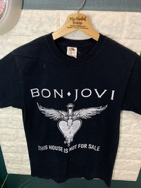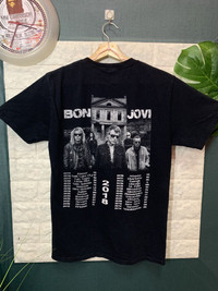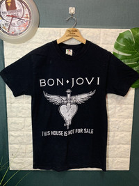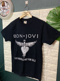 RARE!! Shirt Band BON JOVI size On tag S Shirt still in good Condition 9/10 Actual Measurement : Length arm pit to arm pit 18.5 Inches Length back collar to hem : 27 Inches Please look detail at the photo for confirmation. If any question please ask to me. All item/pieces will be shipped within 1-2 business day. Postal receipt or proof of shipment will be kept for future refference. dont expect the pieces in mint condition unless state.Its because vintage or used item may have sign of wear.TQ Important: Telephone number is required for standard shipping detail price nego until letgo.TQSM ( Ref No :35)