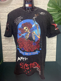 ❌❌BINDING OFFER NOW❌❌ RARE!! Shirt Punk ANTI SISTEM size On tag L Shirt still in good Condition 9/10 Actual Measurement : Length arm pit to arm pit 21 Inches Length back collar to hem : 30 Inches Please look detail at the photo for confirmation. If any question please ask to me. All item/pieces will be shipped within 1-2 business day. Postal receipt or proof of shipment will be kept for future refference. dont expect the pieces in mint condition unless state.Its because vintage or used item may have sign of wear.TQ Important: Telephone number is required for standard shipping detail price nego until letgo.TQSM ( Ref No :34)