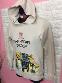 THANK VERY MUCH FOR VISIT OUR PAGE.PLEASE READ CAREFULLY OUR DESCRIPTION AND SATISFIED OUR ITEM BEFORE MAKE PAYMENT .IF OVER PRICE Rare Sweater Hoodies Jean Michel Basquit size On tag S Sweatshirt still in good Condition 9/10 Actual Measurement : Length arm pit to arm pit : 18 Inches Length back collar to hem : 25 Inches Please look detail at the photo for confirmation. If any question please ask to me. All item/pieces will be shipped within 1-2 business day. Postal receipt or proof of shipment will be kept for future refference. dont expect the pieces in mint condition unless state.Its because vintage or used item may have sign of wear.TQ Important: Telephone number is required for standard shipping detail price nego until letgo.TQSM