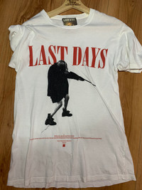 THANK VERY MUCH FOR VISIT OUR PAGE.PLEASE READ CAREFULLY OUR DESCRIPTION AND SATISFIED OUR ITEM BEFORE MAKE PAYMENT . Vintage Shirt Movie Nirvana Last Days Shirt still in good Condition 8/10 (Got one pinhole) Actual Measurement : Length arm pit to arm pit : 18 Inches Length back collar to hem : 26.5 Inches Please look detail at the photo for confirmation. If any question please ask to me. All item/pieces will be shipped within 1-2 business day. Postal receipt or proof of shipment will be kept for future refference. Additional charge $25 for special request shipped via DHL courrier.usually post via DHL received within 4-5 day Dont worry about customs tax or fee..Usually i declare item as a gift & declare value of item below than original price. **Please dont expect the pieces in mint condition unless state.Its because vintage or used item may have sign of wear.TQ Important: Telephone number is required for standard shipping detail price nego until letgo.TQSM