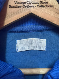 VINTAGE!! 80' Track top FRED PERRY size On tag S Sweatshirt still in good Condition 8.5/10 Refer Pics Actual Measurement : Length arm pit to arm pit 17 Hem Inches Length back collar to hem : 22 Inches (Please refer pic for actual measurement/ No issue to argue after item delivered) Please look detail at the photo for confirmation. If any question please ask to me. All item/pieces will be shipped within 1-2 business day. Postal receipt or proof of shipment will be kept for future refference. dont expect the pieces in mint condition unless state.Its because vintage or used item may have sign of wear.TQ Do not claim reimburse shipping fee for return item !! Important: Telephone number is required for standard shipping detail price nego until letgo.TQSM ( Ref No :61)