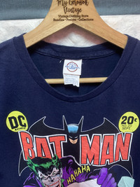 VINTAGE!! 90's Shirt BATMAN size On tag L Shirt still in good Condition 8/10 Actual Measurement : Length arm pit to arm pit 21 Inches Length back collar to hem : 28 Inches Please look detail at the photo for confirmation. If any question please ask to me. All item/pieces will be shipped within 1-2 business day. Postal receipt or proof of shipment will be kept for future refference. dont expect the pieces in mint condition unless state.Its because vintage or used item may have sign of wear.TQ Important: Telephone number is required for standard shipping detail price nego until letgo.TQSM ( Ref No :57-TShirt)