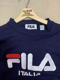 THANK VERY MUCH FOR VISIT OUR PAGE.PLEASE READ CAREFULLY OUR DESCRIPTION AND SATISFIED OUR ITEM BEFORE MAKE PAYMENT Vintage Sweatshirt 90's Fila Big Logo size On tag L Sweater still in good Condition 8/10 Actual Measurement : Length arm pit to arm pit : 22 inches Length back collar to hem : 27 Inches Please look detail at the photo for confirmation. If any question please ask to me. All item/pieces will be shipped within 1-2 business day. Postal receipt or proof of shipment will be kept for future refference. Additional charge $25 for special request shipped via DHL courrier.usually post via DHL received within 4-5 day Dont worry about customs tax or fee..Usually i declare item as a gift & declare value of item below than original price. **Please dont expect the pieces in mint condition unless state.Its because vintage or used item may have sign of wear.TQ Important: Telephone number is required for standard shipping detail price nego until letgo.TQSM (Ref : No.2)