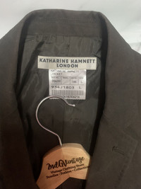 STEAL!! Jacket Blazer KATHARINE HAMNETT LONDON size On tag L Jacket still in good Condition 8.5/10 Actual Measurement : Length arm pit to arm pit 19 Inches Length back collar to hem : 27 Inches Please look detail at the photo for confirmation. If any question please ask to me. All item/pieces will be shipped within 1-2 business day. Postal receipt or proof of shipment will be kept for future refference. dont expect the pieces in mint condition unless state.Its because vintage or used item may have sign of wear.TQ Important: Telephone number is required for standard shipping detail price nego until letgo.TQSM ( Ref No :38)