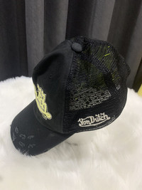 THANK VERY MUCH FOR VISIT OUR PAGE.PLEASE READ CAREFULLY OUR DESCRIPTION AND SATISFIED OUR ITEM BEFORE MAKE PAYMENT ..IF OVER PRICE LET ME KNOW Rare Cap Trucker VON DUTCH Ripped Style Size OS Colour: Black Hat still in good Condition 8/10 Actual Measurement : Diameter 22-25 Inches Please look detail at the photo for confirmation. If any question please ask to me. Dont worry about customs tax or fee..Usually i declare item as a gift & declare value of item below than original price. **Please dont expect the pieces in mint condition unless state.Its because vintage or used item may have sign of wear.TQ Important: Telephone number is required for standard shipping detail price nego until letgo.TQSM