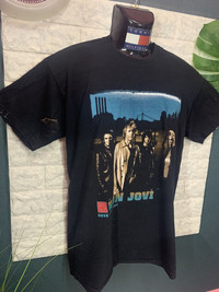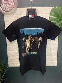 RARE!! Shirt Band BON JOVI size On tag M Shirt still in good Condition 9/10 Actual Measurement : Length arm pit to arm pit 20 Inches Length back collar to hem : 27 Inches Please look detail at the photo for confirmation. If any question please ask to me. All item/pieces will be shipped within 1-2 business day. Postal receipt or proof of shipment will be kept for future refference. dont expect the pieces in mint condition unless state.Its because vintage or used item may have sign of wear.TQ Important: Telephone number is required for standard shipping detail price nego until letgo.TQSM ( Ref No :34)