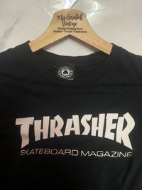 RARE!! Shirt THRASHER Skategang size On tag M Shirt still in good Condition 8/10 Actual Measurement : Length arm pit to arm pit 21.5 Inches Length back collar to hem : 28 Inches Please look detail at the photo for confirmation. If any question please ask to me. All item/pieces will be shipped within 1-2 business day. Postal receipt or proof of shipment will be kept for future refference. dont expect the pieces in mint condition unless state.Its because vintage or used item may have sign of wear.TQ Important: Telephone number is required for standard shipping detail price nego until letgo.TQSM ( Ref No :38)