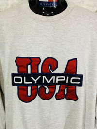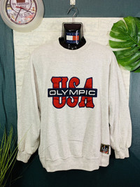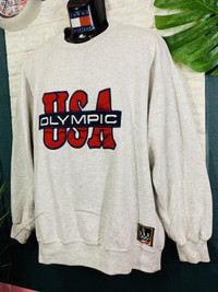RARE!! Sweatshirt 90's USA OLYMPIC size On tag XL Sweatshirt still in good Condition 9/10 Actual Measurement : Length arm pit to arm pit 26 Inches Length back collar to hem : 28 Inches Please look detail at the photo for confirmation. If any question please ask to me. All item/pieces will be shipped within 1-2 business day. Postal receipt or proof of shipment will be kept for future refference. dont expect the pieces in mint condition unless state.Its because vintage or used item may have sign of wear.TQ Important: Telephone number is required for standard shipping detail price nego until letgo.TQSM ( Ref No :20)