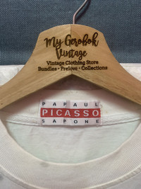 VINTAGE!! Shirt PICASSO Seven Pigmies size On tag L Shirt still in good Condition 9/10 Actual Measurement : Length arm pit to arm pit 22 Inches Length back collar to hem : 28 Inches Please look detail at the photo for confirmation. If any question please ask to me. All item/pieces will be shipped within 1-2 business day. Postal receipt or proof of shipment will be kept for future refference. dont expect the pieces in mint condition unless state.Its because vintage or used item may have sign of wear.TQ Important: Telephone number is required for standard shipping detail price nego until letgo.TQSM ( Ref No :53)