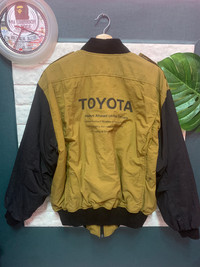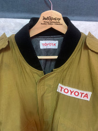 VINTAGE!! Jacket TOYOTA size On tag M Jacket still in good Condition 8/10 (Small Stain as picture attached) Actual Measurement : Length arm pit to arm pit 24 Inches Length back collar to hem : 28 Inches Please look detail at the photo for confirmation. If any question please ask to me. All item/pieces will be shipped within 1-2 business day. Postal receipt or proof of shipment will be kept for future refference. dont expect the pieces in mint condition unless state.Its because vintage or used item may have sign of wear.TQ Important: Telephone number is required for standard shipping detail price nego until letgo.TQSM ( Ref No :50)