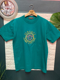 VINTAGE!! Shirt VERSACE Jeans Couture size On tag M Shirts still in good Condition 9/10 Actual Measurement : Length arm pit to arm pit 20.5 Inches Length back collar to hem : 28 Inches Please look detail at the photo for confirmation. If any question please ask to me. All item/pieces will be shipped within 1-2 business day. Postal receipt or proof of shipment will be kept for future refference. dont expect the pieces in mint condition unless state.Its because vintage or used item may have sign of wear.TQ Important: Telephone number is required for standard shipping detail price nego until letgo.TQSM ( Ref No :45)