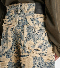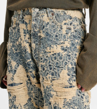 The 1981 jeans from Acne Studios showcase a monogram pattern and distressed details all over. Crafted in Italy, this design is cut to a relaxed silhouette and stands out with its contrasting colors. Product Details - Material: 100% cotton - Care instructions: hand wash - Made in Italy - Designer color name: Mid Blue - Item color: blue - Contains non-textile parts of animal origin - Item number: P01073595 Size & Fit - True to size - Non-stretchy fabric - Wide-leg - Mid-rise - The model seen in the picture is 178cm-5'10" and wearing a size XS