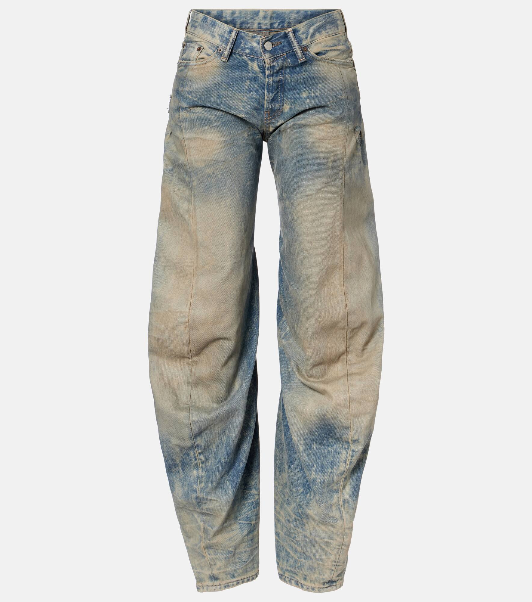 The 2006F denim jeans from Acne Studios are cut to a relaxed fit with a low-rise waist and a wide-leg silhouette. Finished with a washed-off effect, this pair embodies the brand’s signature Scandinavian-cool aesthetic. Product Details - Material: 100% cotton - Care instructions: hand wash - Made in Italy - Designer color name: Mid Blue - Item color: blue - Details: 100% cow leather - Pockets: five pockets - Closure: button fastening - Belt loops - Contains non-textile parts of animal origin - Item number: P01088960 Size & Fit - Fits small to size - we recommend trying one size larger - Non-stretchy fabric - Wide-leg - Low-rise - The model seen in the picture is 178cm-5'10" and wearing a size 27