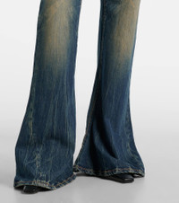 Product Details - Material: 100% cotton - Care instructions: machine wash at 30 degrees - Made in Italy - Designer color name: Dark Blue - Belt loops - Pockets: side slit pockets, back pockets - Closure: zipper fly, button fastening - Material II: 100% cow leather - Item number: P00955388 Size & Fit - True to size - Non-stretchy fabric - Slim-leg with a flared hem - High-rise - The model seen in the picture is 178cm-5'10" and wearing a size DT 34