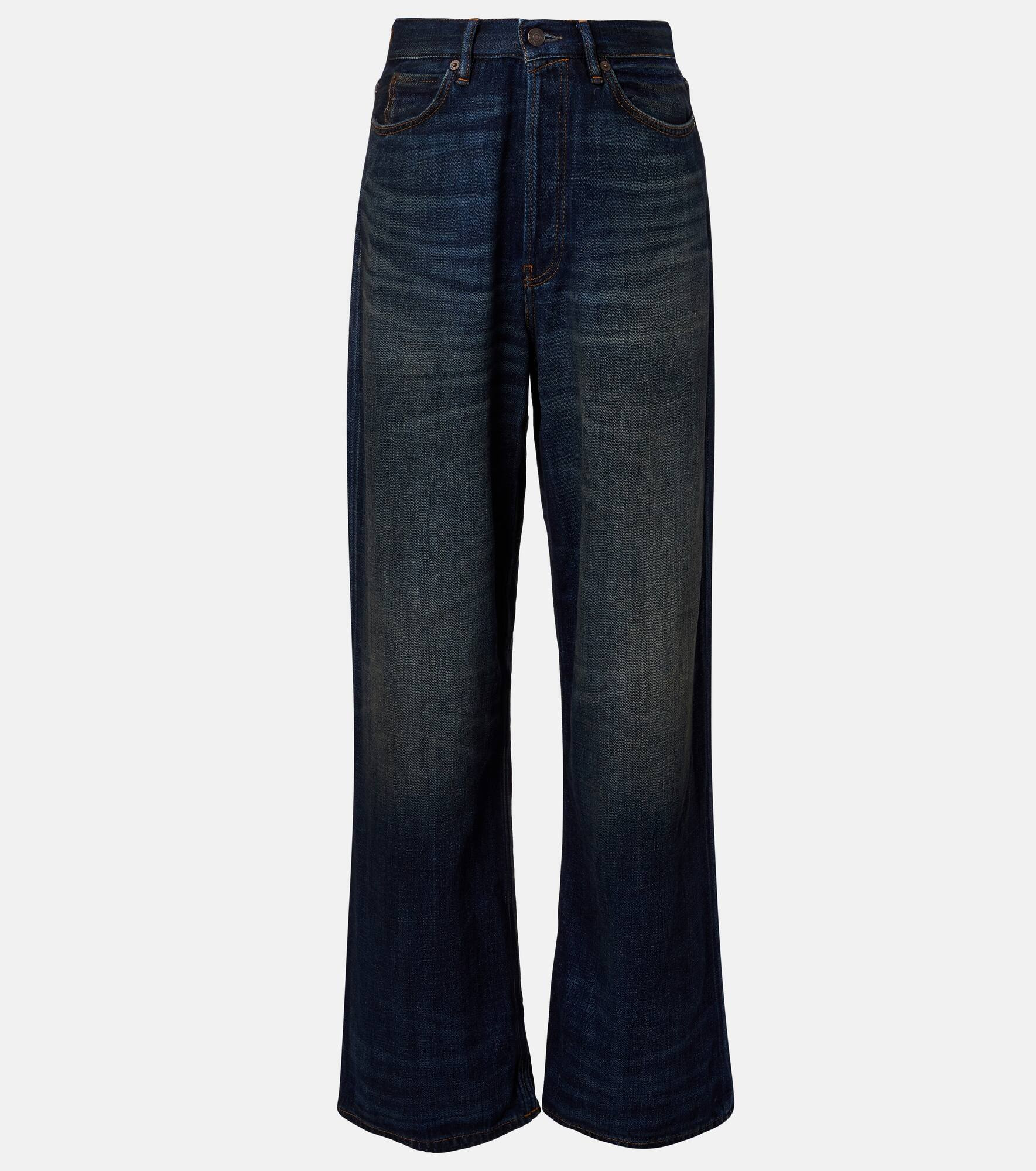 Stockholm-based Acne Studios has a firmly established cult following thanks to its Scandinavian-cool aesthetic. The Acne Studios 1981 Yoyogi wide-leg jeans come with a high-rise waistline and a washed effect for a vintage look. Product Details - Material: 100% cotton - Care instructions: machine wash at 30 degrees - Made in Italy - Designer color name: Dark Blue - Item color: blue - Details: 100% cow leather - Contains non-textile parts of animal origin - Belt loops - Pockets: five pockets - Closure: button fastening - Item number: P01088964 Size & Fit - True to size - Non-stretchy fabric - Wide-leg - Mid-rise - The model seen in the picture is 178cm-5'10" and wearing a size XS