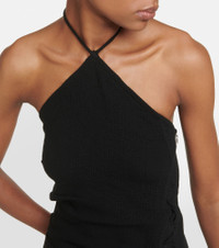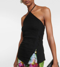 Stockholm-based Acne Studios has a firmly established cult following thanks to its Scandinavian-cool aesthetic. Infused with a touch of wool, this top extends to hip length in a regular fit. It features halterneck tie straps and an asymmetric hem interposed by front lace-up detailing. Product Details - Material: 60% viscose, 40% wool - Made in Italy - Closure: zipped side, invisible zipper, self-ties - Designer color name: Black - Care instructions: dry clean - Item number: P00843868 Size & Fit - Fits large to size - we recommend trying one size smaller - Cinched waist - Mid-weight material - Falls to the hip - The model seen in the picture is 178cm-5'10" and wearing a size DT 32