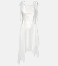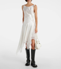 Asymmetric lace-trimmed satin minidress