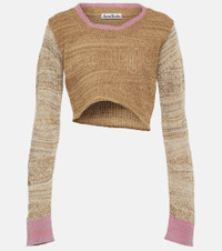 Stockholm-based Acne Studios has a firmly established cult following thanks to its Scandinavian-cool aesthetic. Designed with irregular seams and a distorted silhouette, this wool-blend sweater makes a fashion statement. Product Details - Care instructions: hand wash - Made in Italy - Material: 21% polyamide, 4% other fibres, 57% wool, 18% polyester - Designer color name: Camel Brown - Material II: 26% linen, 5% wool, 2% polyamide, 27% polyester, 40% cotton - Item number: P00843835 Size & Fit - True to size - Extra-long sleeves - Dropped shoulders - Fitted - Mid-weight material - Cropped - The model seen in the picture is 178cm-5'10" and wearing a size XS