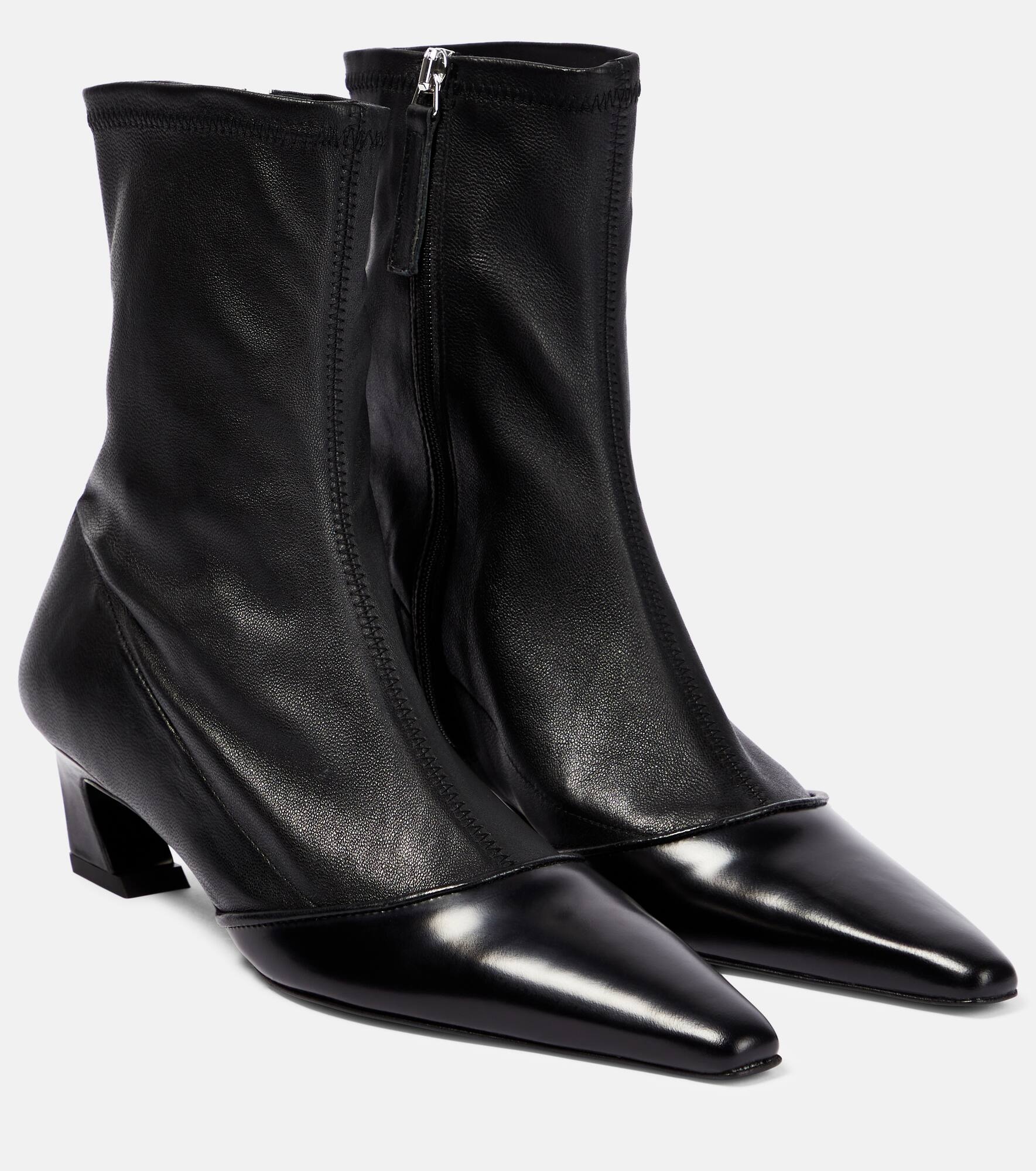 Upgrade your shoe edit with the Bano ankle boots from Swedish-chic brand, Acne Studios. The design is made from lamb leather, sits upon a curved heel, has tonal front-running topstitching, and features patent-leather toe detailing. Product Details - Lining: leather - Closure: zipped side - Sole: leather insole and sole - Toe shape: pointed toe - Upper: leather - Designer color name: Black - Comes with dust bags - Comes with a box - Made in Italy - Item number: P00750926 Size & Fit - True to size - Slightly narrow - Half sizes please take the next size down - European sizes - 5cm-2" heel (size EU 38)
