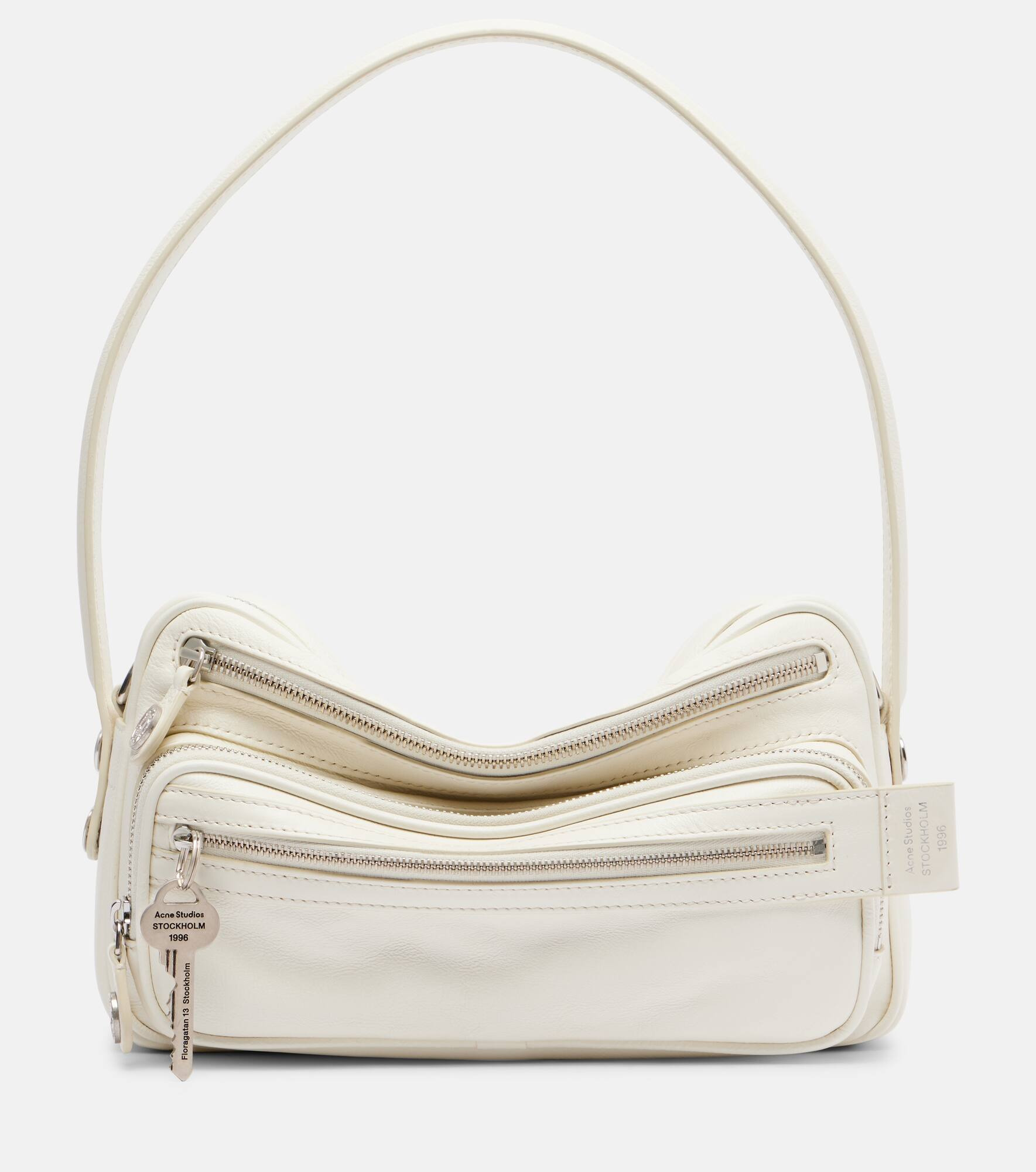 Stockholm-based Acne Studios has a firmly established cult following thanks to its Scandinavian-cool aesthetic. Crafted from leather, the Camero Mini shoulder bag features a compact, structured silhouette finished with a branded key charm. Product Details - Material: leather - Lining: leather - Made in Italy - Designer color name: Cream White - Item color: white - Top handle, Detachable shoulder strap - Closure: two-way zipped top - Zipped front pocket - Internal details: internal slot pocket - Item number: P01046973 Size & Fit - Height 16cm-6.5" - Width 27cm-10.5" - Depth 6,5cm-2.5" - Length of handles 62cm-24.5" - Adjustable shoulder strap - Max. length shoulder strap 120cm-47"