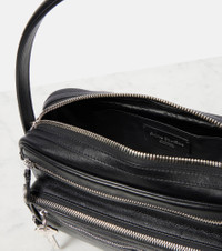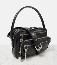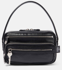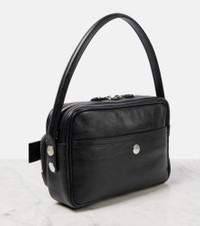 Daily looks are chic when carrying the Camero Party shoulder bag from Acne Studios. The compact leather design is complete with a branded key charm and the brand's signature denim-style button. Product Details - Material: leather - Lining: leather - Made in Italy - Designer color name: Black - Front pockets - Closure: two-way zipped top - Top handles, Detachable, adjustable shoulder strap - Hardware color: silver - Includes: dust bag - Back pocket - Internal details: internal slot pocket - Item number: P01001243 Size & Fit - Height 17cm-6.5" - Width 27cm-10.5" - Depth 6cm-2.5" - Length of handle 54cm-21.5" - Min. length shoulder strap 79cm-31" - Max. length shoulder strap 119cm-47"