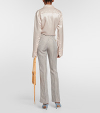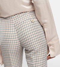 These pants from Acne Studios are a playful addition to your warm-season edit. Made from a lightweight linen blend, the low-rise style boasts an all-over gingham pattern and has a regular fit with flared legs. Product Details - Material: 59% linen, 41% viscose - Closure: zipper fly, button fastening - Pockets: side slit pockets, back pockets - Designer color name: Light Blue/Pink - Pocket lining: 100% viscose - Care instructions: dry clean - Made in Portugal - Item number: P00776075 Size & Fit - Fits small to size - we recommend trying one size larger - Lightweight material - Slim-leg with a flared hem - Low-rise - The model seen in the picture is 178cm-5'10" and wearing a size DT 36