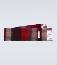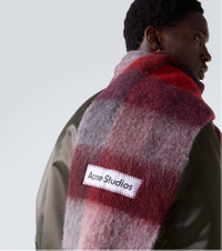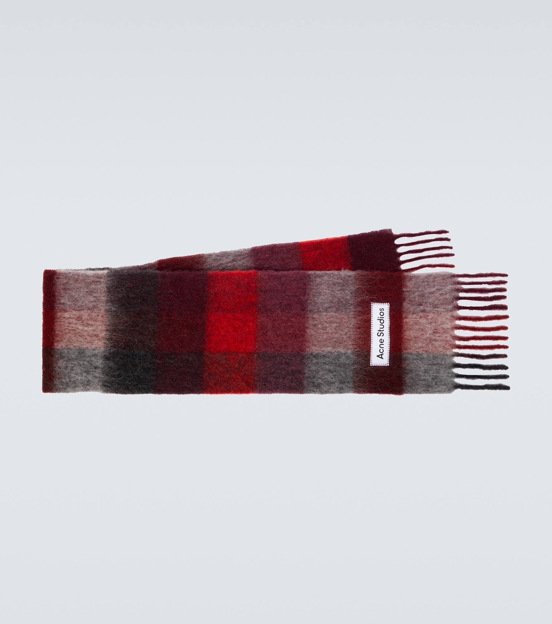 Crafted in Italy, this cozy scarf from Acne Studios adds a stylish touch to any look. This distinctive accessory features a checked pattern, fringed trims, and a contrasting logo label for a signature finish. Product Details - Material: 33% alpaca wool, 25% wool, 22% nylon, 20% mohair - Care instructions: dry clean - Made in Italy - Designer color name: Red/Black - Item color: red, black - Item number: P01066553 Size & Fit - Length 250cm-98.5" - Width 28cm-11" - Length of fringe 13cm-5"