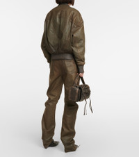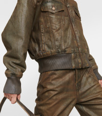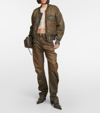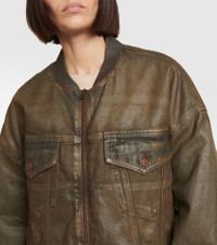 Stockholm-based Acne Studios has a firmly established cult following thanks to its Scandinavian-cool aesthetic. This bomber jacket is made from coated denim for an intentional worn-in effect. Product Details - Material: 100% cotton - Elasticated waistband - Care instructions: dry clean - Made in Italy - Designer color name: Blue Beige - Lining: 100% polyamide - Filling: 100% polyester - Closure: zipped front - Pockets: side slit pockets, flap pockets - Elasticated cuffs - Item number: P00843855 Size & Fit - True to size - Dropped shoulders - Oversized - Heavy material - Falls to the hip - The model seen in the picture is 178cm-5'10" and wearing a size DT 34