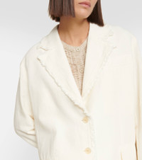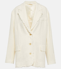 Turn to this blazer from Acne Studios for an effortlessly elegant addition to your everyday rotation. Made from cotton and linen for an oversized fit, the style features a single-breasted silhouette and is finished with raw edge detailing. Product Details - Pockets: faux pockets, breast pocket, flap pockets - Made in Bulgaria - Material: 63% cotton, 37% linen - Designer color name: Warm White - Care instructions: dry clean - Closure: buttoned front - Item number: P00843450 Size & Fit - Fits large to size - we recommend trying one size smaller - Dropped shoulders - Oversized - Mid-weight material - Falls below the hip - The model seen in the picture is 178cm-5'10" and wearing a size DT 32