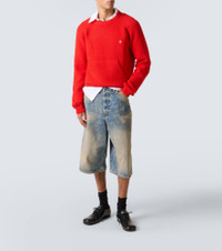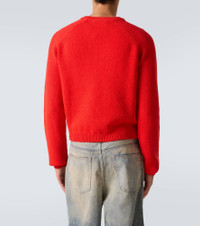 This Acne Studios sweater is crafted from a cotton-blend, offering a warm and textured feel. This style features subtle chest embroidery, a front kangaroo pocket, a crewneck, and ribbed trims for a polished finish. Product Details - Material: 72% cotton, 27% nylon, 1% elastane - Care instructions: hand wash - Made in China - Designer color name: Red - Item color: red - Collar: crewneck - Pockets: kangaroo pocket - Cuff: ribbed - Hem: ribbed - Item number: P01066547 Size & Fit - True to size - Straight fit - Stretchy fabric - Slightly cropped - Height of model is 188cm-74" and wears a size L