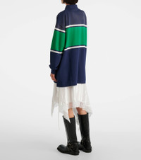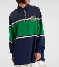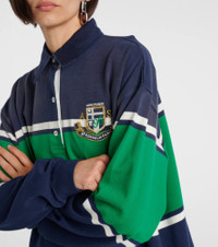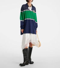 Stockholm-based Acne Studios has a firmly established cult following thanks to its Scandinavian-cool aesthetic. Crafted from cotton jersey, this polo sweater dress features a colorblocked design and is cut to a regular silhouette. Product Details - Material: 100% cotton - Care instructions: machine wash at 30 degrees - Made in Portugal - Designer color name: Navy/Green - Item color: blue, green - Collar: polo collar - Closure: partially buttoned front - Cuff: ribbed - Item number: P01088671 Size & Fit - Fits large to size - we recommend trying one size smaller - Dropped shoulders - Oversized - Slightly stretchy fabric - Falls below the hip - The model seen in the picture is 178cm-5'10" and wearing a size XXS